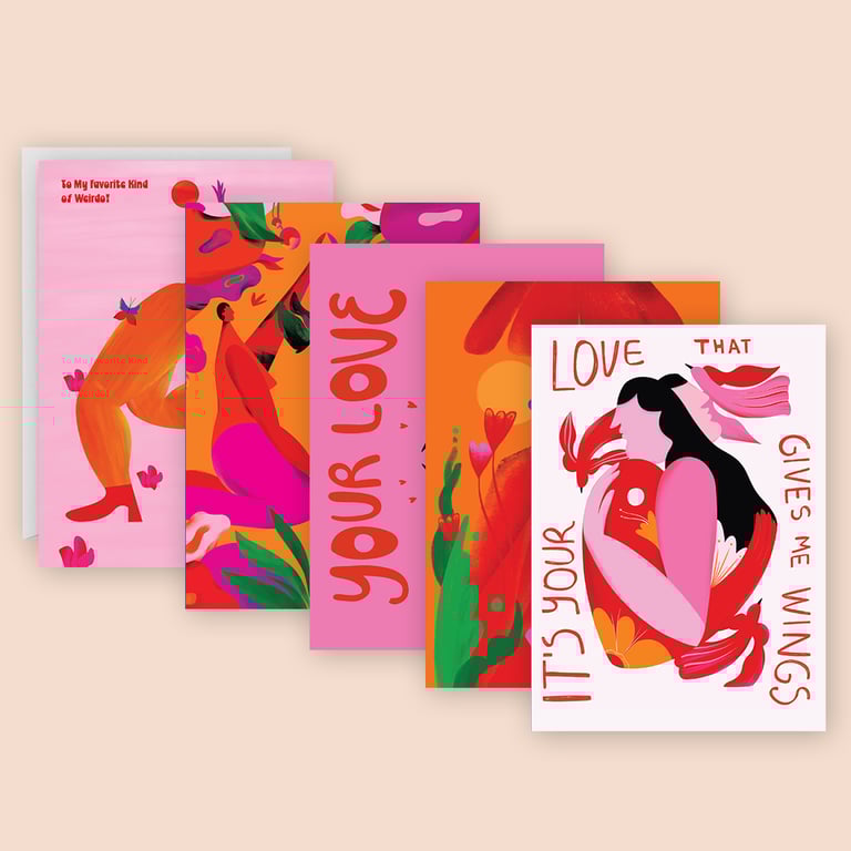 Celebrate LOVE with these vibrant cards! Choose your favourite or collect all five.
